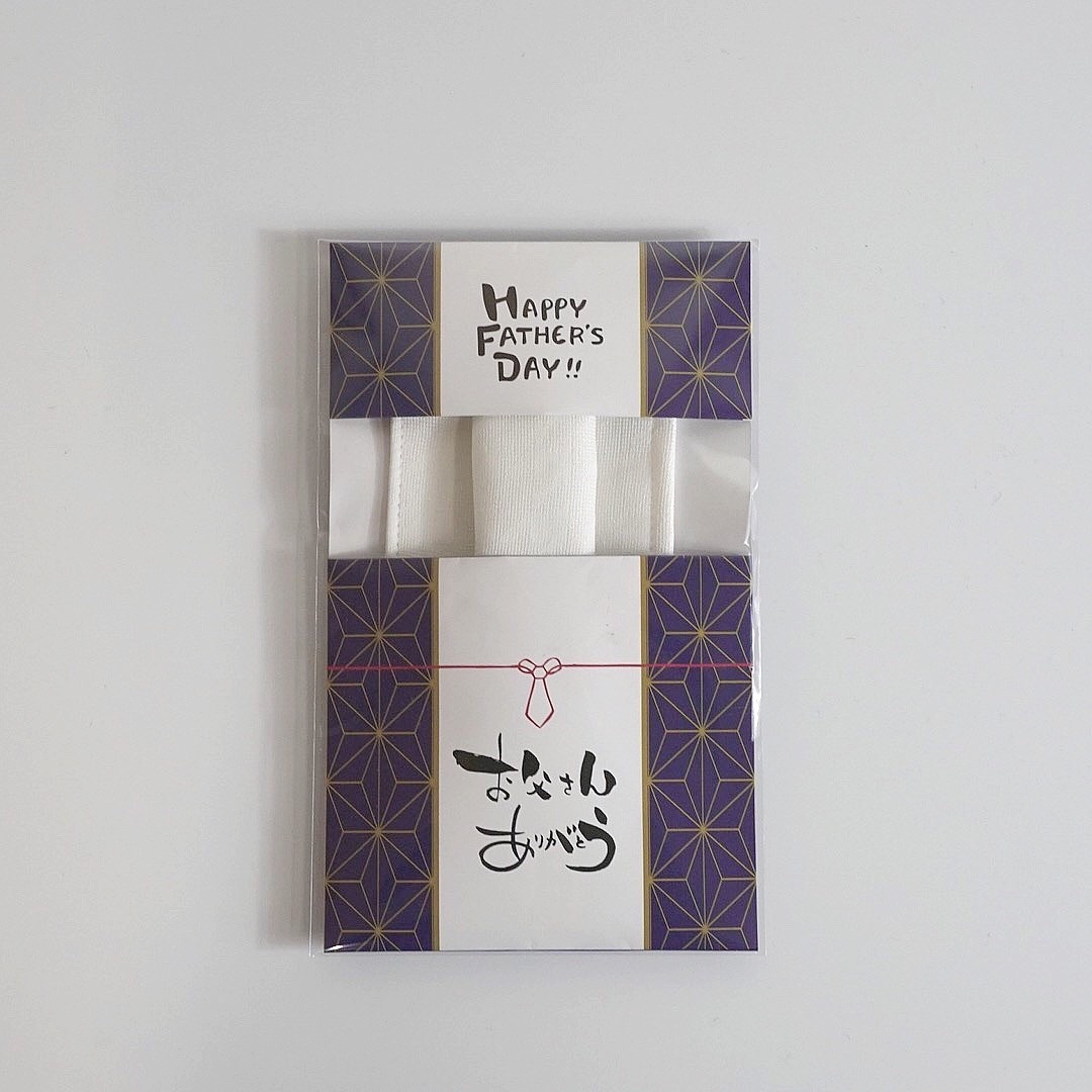 「母の日」ギフトで好評だった、シルク生地に織り込んだ感謝のメッセージがグレードアップ。「お父さんありがとう」に加えて3種類のメッセージからお選びいただけます。ラッピング、包装はできませんが、小杉織物特製の父の日用封筒でお贈りします。