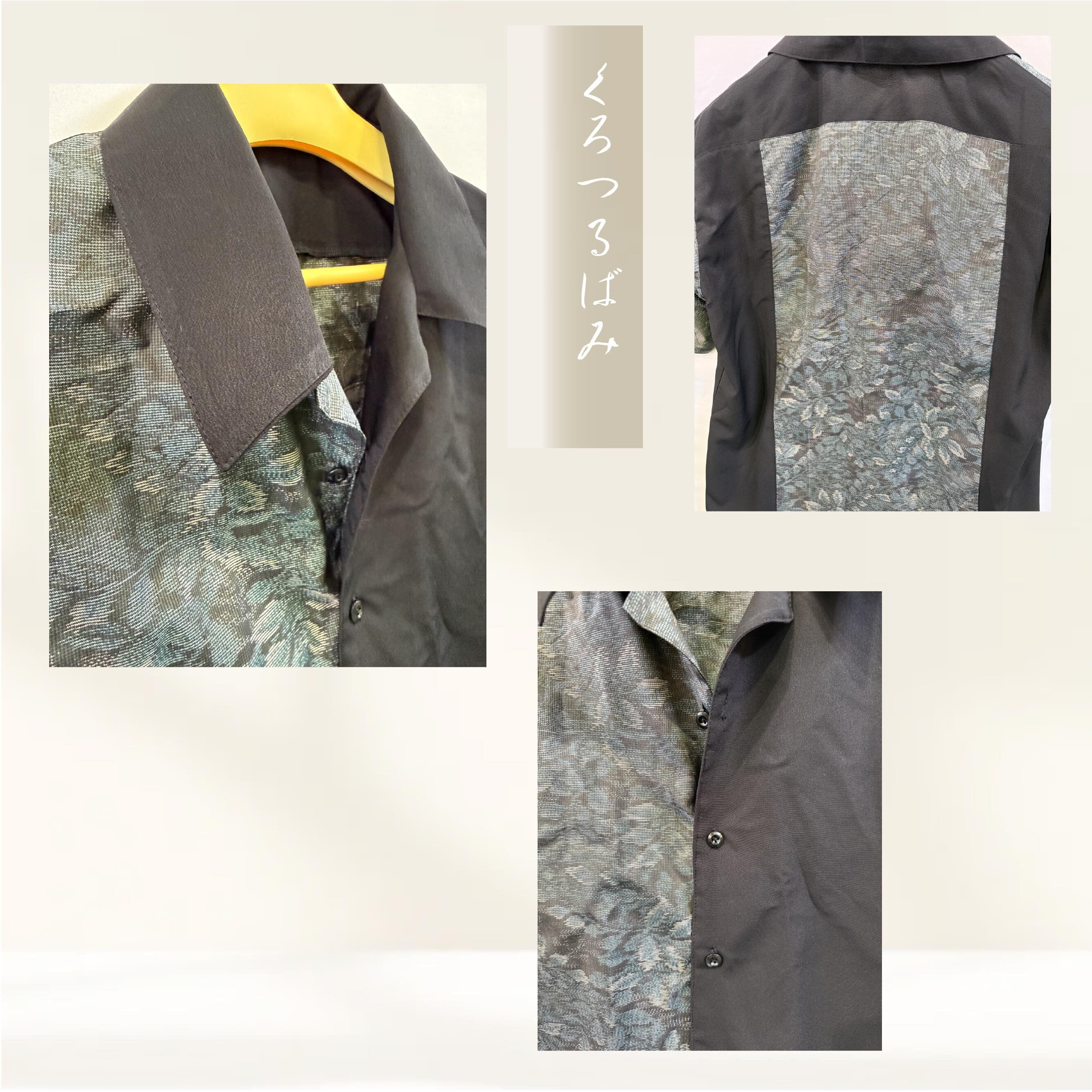 厳選されたアンティーク着物を贅沢に解体し、現代的なリラックスフィットへと再構築したオープンカラーシャツ。熟練の技術で一枚一枚丁寧に仕立て直しており、同じ柄には二度と出会えない「一点物」としての価値を追求しています。