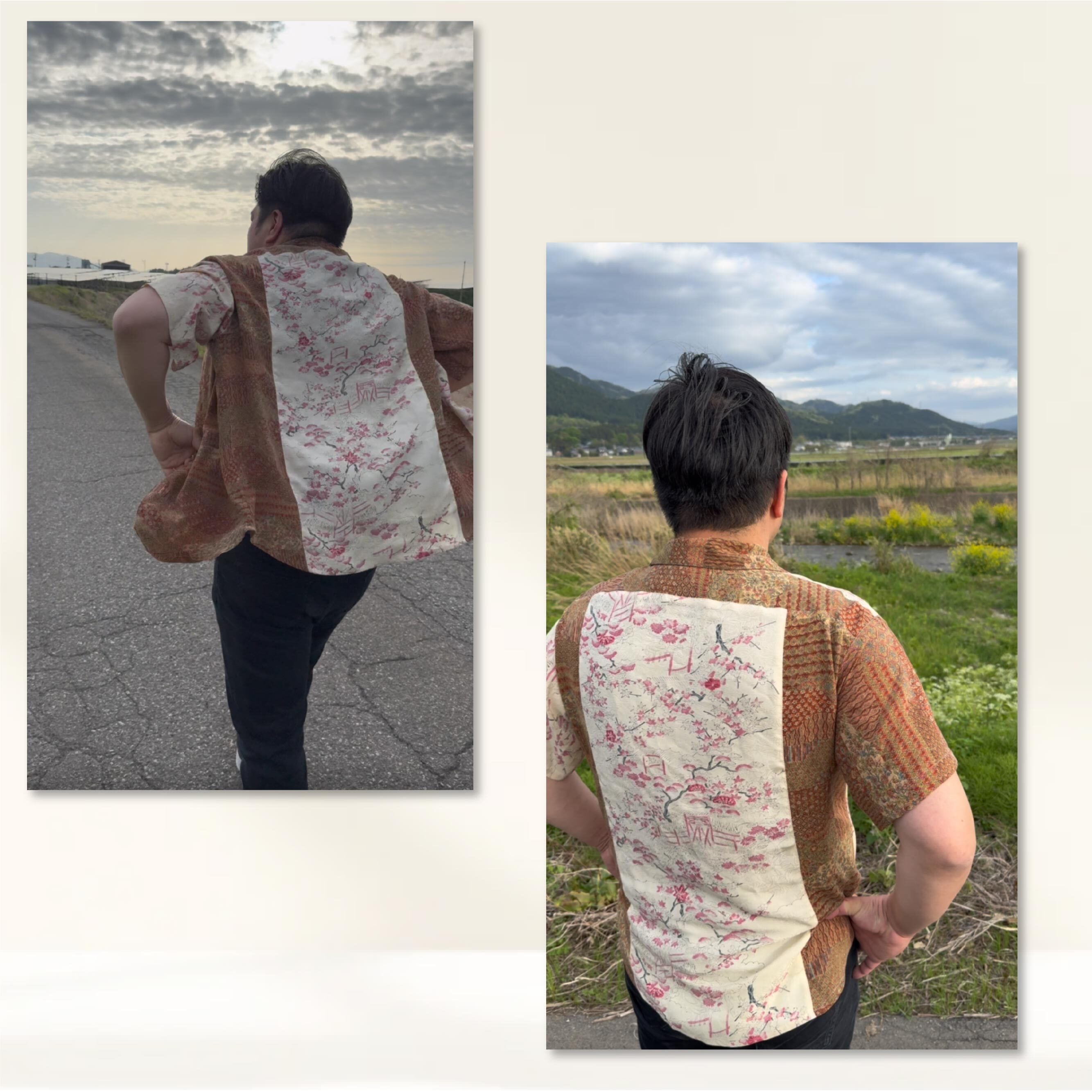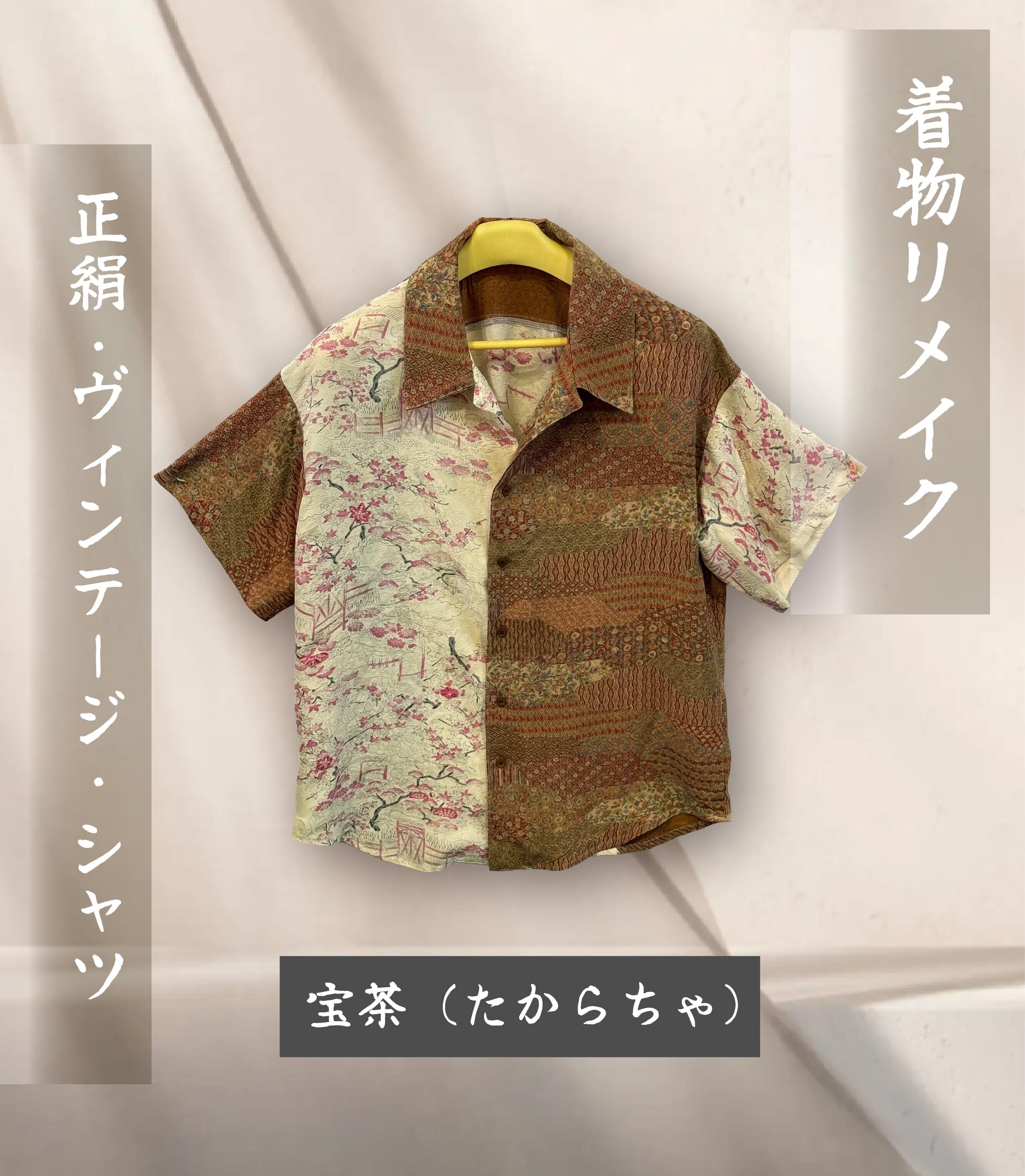 【着物リメイク】正絹・ヴィンテージ・シャツ 宝茶(たからちゃ)