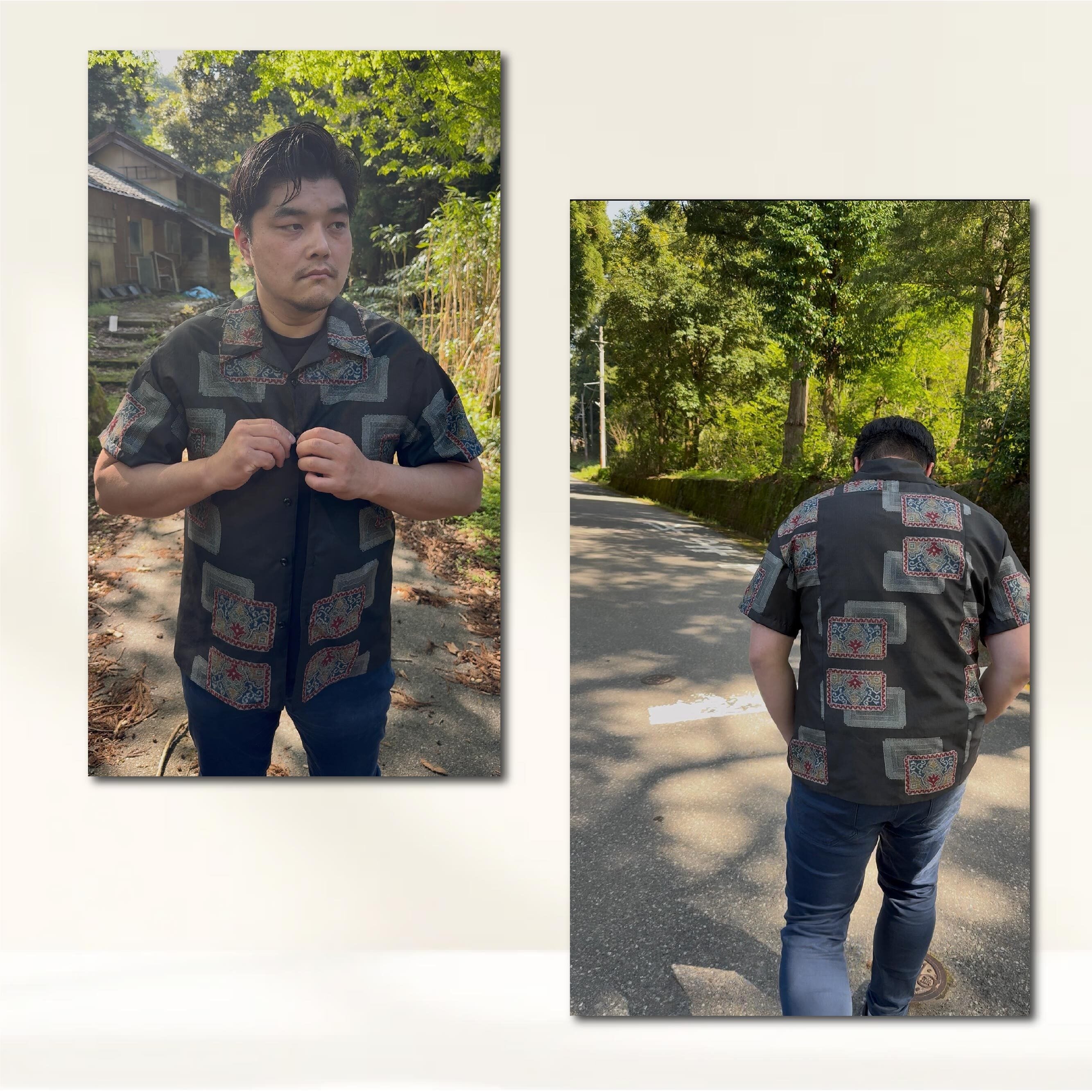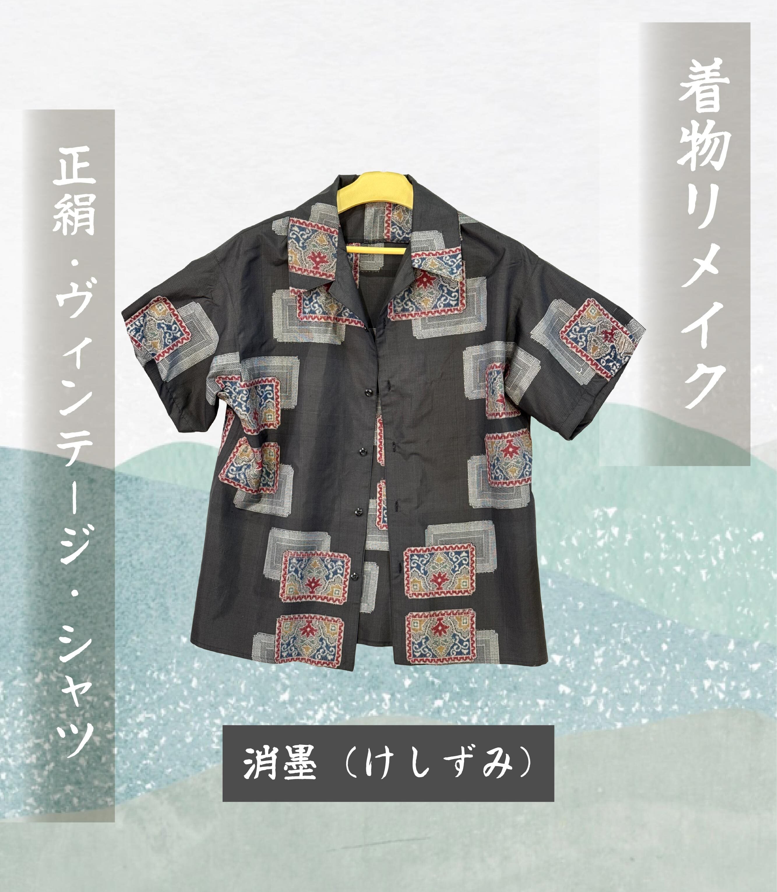 【着物リメイク】正絹・ヴィンテージ・シャツ 消墨(けしずみ)