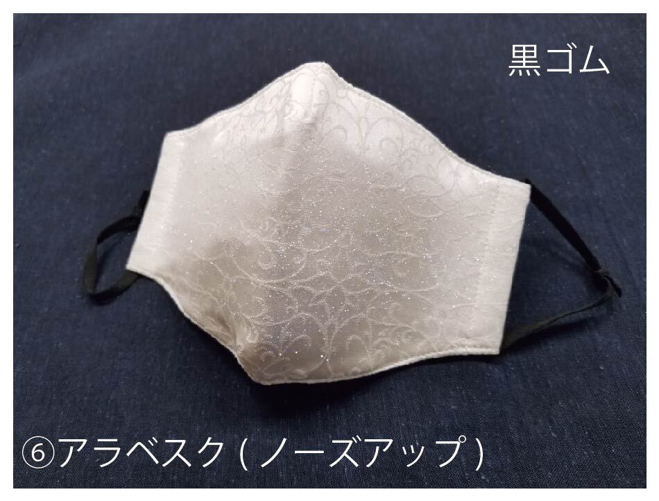 【※この商品は、5~10営業日(土・日・祝を除く)以内に順次お届け先住所に向けて発送いたします。注文が殺到している場合は、発送が遅れますこと、あらかじめご了承ください。到着日時指定は承れません。】 安心の不織布フィルター2枚入り 4重構造 絹マスクにきらめきを添えて。まるでパールの輝き 高級な光沢感の「サテン織」で「バラ」、「アラベスク」、「フラワー」、「七宝麻の葉」の柄模様をパールの輝きのラメ糸と絹糸で織りあげ大人の綺麗めマスクに仕上がっております。普段のおしゃれから、結婚式やパーティにもお使いいただけます。また、裏面の生地にはラメを使用せず直接お肌にラメが触れない様に仕立ており絹100%。お肌にやさしい商品となっております。さらに、両タイプに十字縫いがプラスされ口元への吸い付きが軽減されました。従来のノーズアップタイプより少し大きめに仕上げたことでより自然にフィットします。 ※耳ゴムを黒か白の選択が可能です。 ※生地の中にある耳ゴムの結び目を引っ張りだし、結び直すことで長さ調整も出来ます。 ※トップページのモデルが着用しているタイプはノーズアップタイプ・バラ柄となります。 ■実際の装着動画はこちらからご覧いただけます。 https://www.youtube.com/watch?v=DDaA7HxRvE0&feature=youtu.be ■高密度織りにより、至高の手触りを実現。 小杉織物が厳選した絹糸を使用することで、絹の光沢感を最大限に引き出し、肌ざわりが格段にアップ。さらにあなたの肌をやさしく、ふんわり包み込みます。耳掛け部分には、当社で織っている幅広ソフトゴムを使っているので、耳が痛くなりにくいです。 ■接触冷感シルクは“自然のエアコン”。だから、年中快適。 絹=シルクは、カイコの繭(まゆ)から作られる古来の天然繊維。絹は「自然のエアコン」。季節の変わり目でも絹は調温性が高く、1年を通して快適に過ごせる生地を新しく織りあげました。いつでも絹マスクをお使いいただけるよう、小杉織物の技術を結集いたしました。また、紫外線カットや抗菌性、臭いを抑えてくれる効果があるともいわれています。 ■小杉織物がこれからの季節にマッチした「高密度織り」を採用。 暑さが残る季節から、肌寒い季節まで、季節の変わり目・冬場でも安心快適の織りかたを考案。シルクの生地の模様は、バラ・アラベスク・フラワー 七宝麻のはの4柄をご用意しております。 また、厳選された絹糸で「高密度織り」で仕上げており、更にラメを織り込むことで、上品な輝きとシルクの光沢感が重なり、より華やかな雰囲気になっております。付けただけで華やかな気分になります。 ■注意事項(よくお読みください) ※この商品は「パールの輝き絹マスク」です。5~6営業日(土・日・祝を除く)以内に、お届け先住所へ向けて当社から順次発送します。注文が殺到している場合は、発送が遅れますこと、あらかじめご了承ください。到着日時指定は承れません。 ■毎日身に付けるものだから。お肌にやさしいシルク100%使用 絹は、肌にやさしい健やかな天然素材です。セリシンなどを含む絹の成分は人の皮膚に近いとされており、身につけるだけでお肌がしっとり潤います。 実際、「マスクあれ」とも呼ばれる不織布マスクなどによる肌あれに悩まされた人が、皮膚科の専門医から当社の絹マスクをすすめられたケースもあるほどです。お肌が弱い方やアトピーの方など、毎日マスクをつけられる方に、特におすすめです。 ※「小杉織物」の紙封筒に入れてヤマト運輸のネコポス便(一部の方には普通郵便)にてお送りしますので、あらかじめご了承ください。送料は全国一律200円を頂戴します。1つの紙封筒に最大10枚まで入れてお送りします。それ以上ご注文いただいた場合は複数の紙封筒でのお届けとなります。 ※製品の性格上、発送後の交換、返品はいっさいお断り申し上げます。 ※洗い方※ ・中性洗剤で優しく手洗い(押し洗い)します。 ・洗濯後、水道水で十分すすいでください。 ・すすいだ後、軽く絞り、形を整えてから直射日光を避け風通しの良い日陰干しをお勧め致します。 ・アイロンを使用される場合、必ずあて布をして低温で使用してください。中のフィルターが溶ける恐れがあります。 ・漂白剤は黄変しますのでご利用にならないでください。 ※使用上の注意※ ・有害粉・有害ガス等を防ぐ目的での使用はできません。 ・皮膚に異常がある時や、異常があらわれた時は使用しないで下さい。 ・用途以外に使用しないで下さい。 ※サイズ ・ワンタック 高さ約13.5~14cm×巾約17cm(着用時のサイズです) ・ノーズアップ Mサイズ 高さ約12.2cm×巾約21.8cm Sサイズ 高さ約11.8cm×巾約20.8cm ノーズアップの耳ゴムの結び目は仮結びをしておりますのでお客様ご自身でゴムの長さを調整していただき、結び目が見えないよう収納してください。 ※素材 マスク生地:絹100% 表地のみ一部金属糸使用 フィルター(2枚入り):不織布フィルター ポリプロピレン100%×1枚 抗ウイル